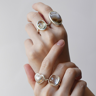 天然石を使ったシリーズや、テーマに沿ったコレクションシリーズなど、着け心地にもこだわり、デザインから制作までひとつひとつアトリエで丹念に仕上げたアイテムをご紹介します。