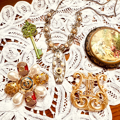 現代物にはない繊細で味わいのあるヴィンテージパーツのデザインを生かし、大胆でユニークに組み合わせ、今の気分を表現したオシャレを楽しくする、1点物のアクセサリーが揃います。