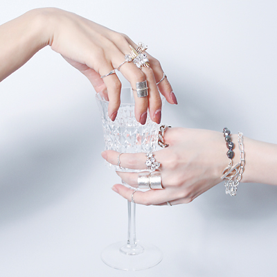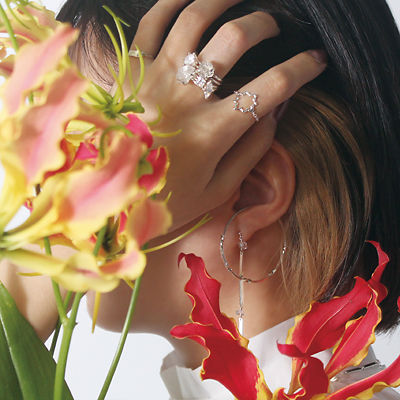 お持ちのジュエリーとの重ね付けによる、新しいスタイリングのご提案をしています。