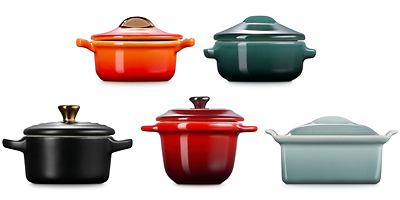 〈ル・クルーゼ〉創業100周年を記念し、ブランドの歴史を彩ってきた5つの代表的なココットを、ミニチュアサイズで忠実に再現した特別なコレクションです。