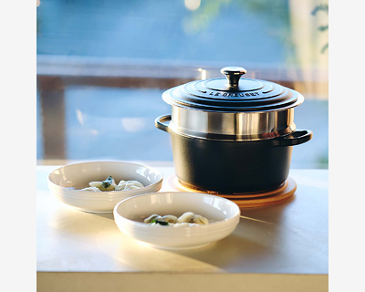 キャンペーン期間中にシグニチャー ココット・ロンド 20cm~24cm、シグニチャー ココット・オーバル 25cmの「マットブラック」または「メレンゲ」カラーをご購入いただいた方は、 「スチーマー」を 50%OFF でご購入いただけます。 手作り焼売や、蒸し野菜、茶わん蒸し…。ムラのない熱まわりで食材が均等に蒸し上がる蒸し器は、お料理の幅をぐっと広げてくれる心強いパートナー!この機会に、お得に手に入れてみませんか?