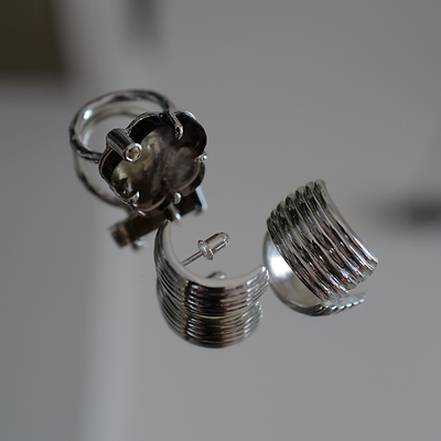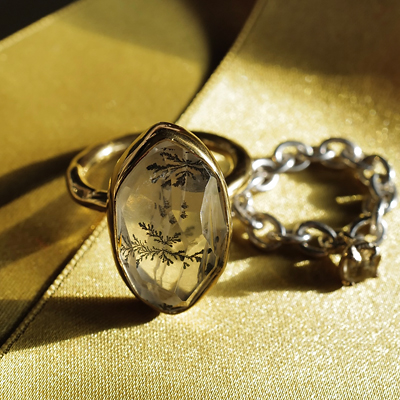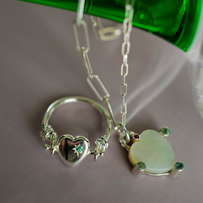 「何でもない日常を特別感のある毎日に」 身につける人の “ワクワク” を大切に、Silver、14k gold filled、天然石を使った華やかさと大胆さ、クオリティを兼ね備えた大人のアクセサリーブランド〈R B WOLVES〉。 石板から選びカットした一点物のハート型の天然石や、一つ一つハンドエングレービングを施したアイテムなど、キャッチーで特別感のあるアクセサリーをご紹介します。