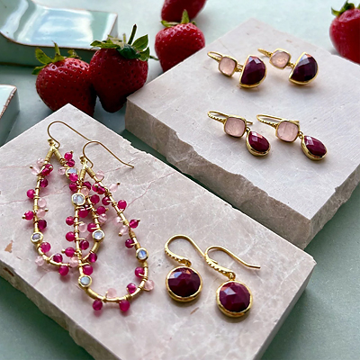 イギリス王室のキャサリン妃が着用したことで話題となったアクセサリーブランド。 天然石の色使いがエレガントで華やかに装いを彩ります。 [上段画像の商品] Charis Round Gemstone ピアス 14,300円 ネックレス 18,700円 (各 真鍮、22Kコーティング、天然石)