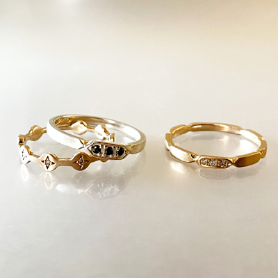 今回は、春の装いにぴったりな、柔らかな色の新作リングをご紹介。