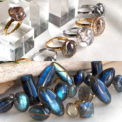 樹脂粘土パーツや天然石を一つひとつ手作業で仕立て、軽やかさと透明感、上品さと個性の “絶妙なバランス” で、日常を彩るアクセサリーを作っています。