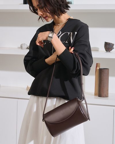 ● 気分やシーンに合わせて、キレイめな肩掛けとカジュアルな斜め掛けを楽しめる2Wayバッグ。