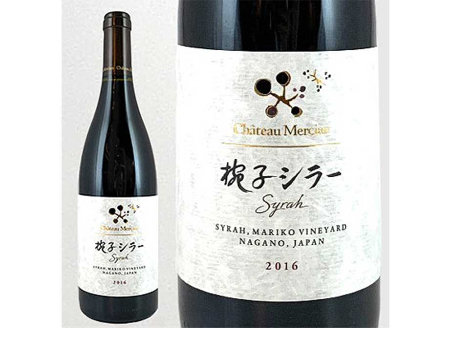葡萄の実が描かれた和紙のラベルには、金と毛筆で「Chateau Mercian椀子シラー」の文が。このワインは、日本最古のワイン造りの歴史をもつシャトー・メルシャンが、長野県上田市丸子町の椀子ヴィンヤードの、シラー葡萄100%で造り上げたワインです。「椀子」の名は、6世紀後半に欽明天皇の皇子である「椀子皇子」の領地であったことから命名されたもの。丸子町の古代名も椀子であったと伝えられています。