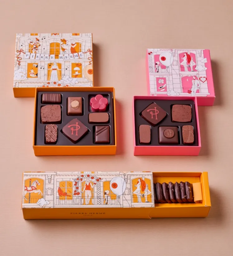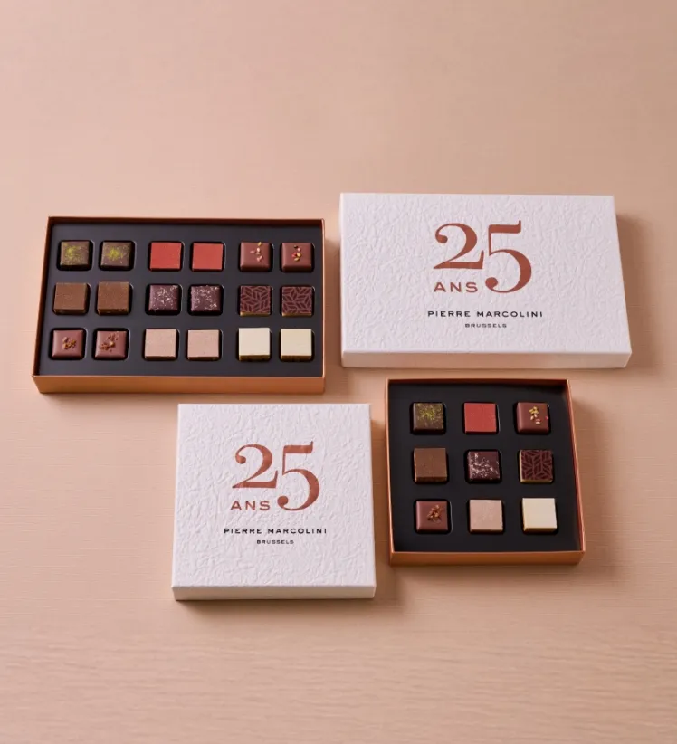 辻口さん:ケチュア語(ペルーの公用語のひとつ)で「Inti」は「太陽」、「Killa」は「月」を表す言葉で、それをパッケージでも表現しました。どちらも中には産地の異なるカカオを使った6種類のボンボンショコラが入っています。 このボンボンショコラのベースになっているのは、先ほどお話しした「FARM to BAR」を体現すべく開発し、2022年6月に発売されたタブレットショコラです。オリジナルのロースターなどを用いて完成させたそのタブレットを使ってガナッシュを作り、ボンボンショコラにしました。