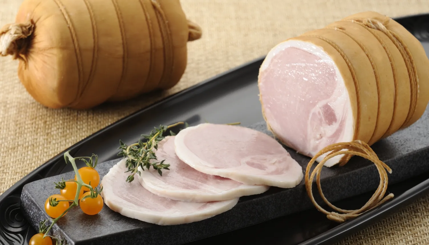 那須井さん:弊社の看板商品である、こちらの「熟成布巻きロースハム」です。弊社は今年で創業125年になりますが104年前から作っている自慢の味わいです!