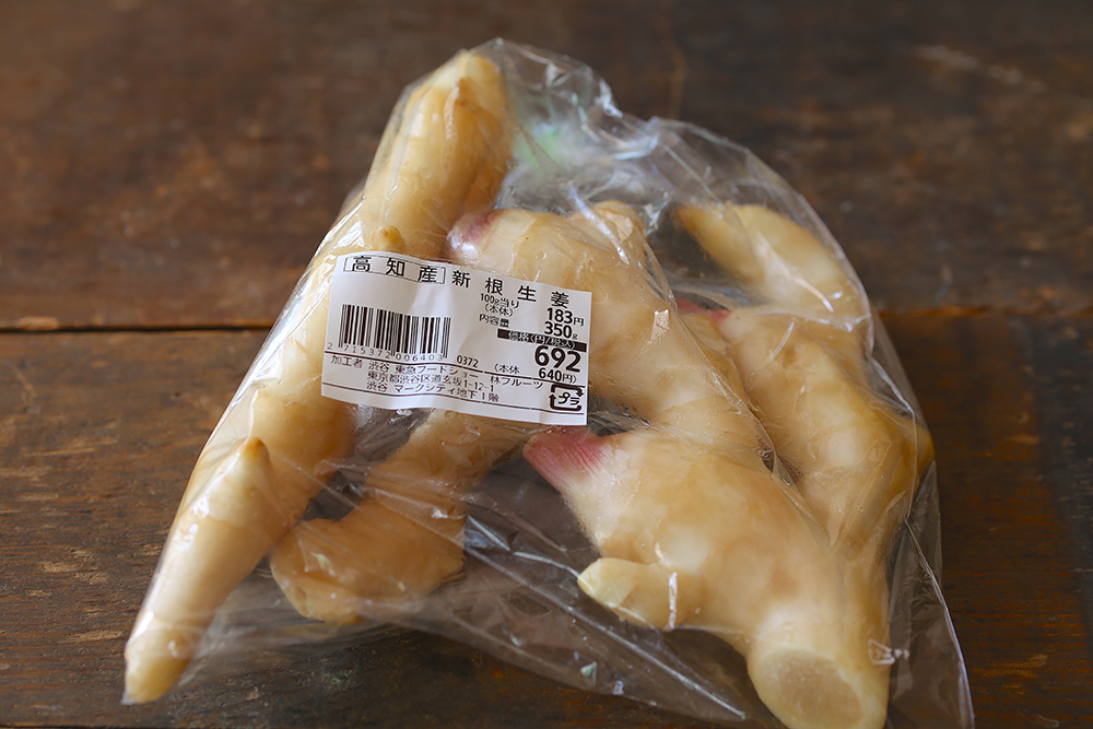 今回購入したのは新生姜。爽やかな香りと辛味が美味しいですよね。 こちらを使って早速料理をしていきます。