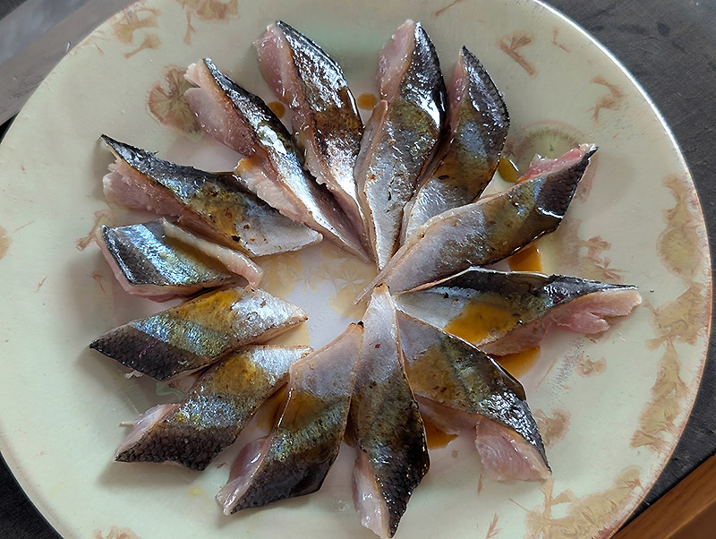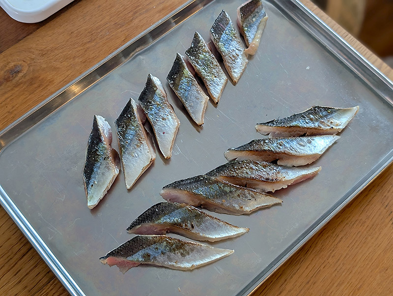 ※ここで一度冷凍をしアニサキスの対策をしてください。筆者はアニサキスライトでくまなくチェックをしています。