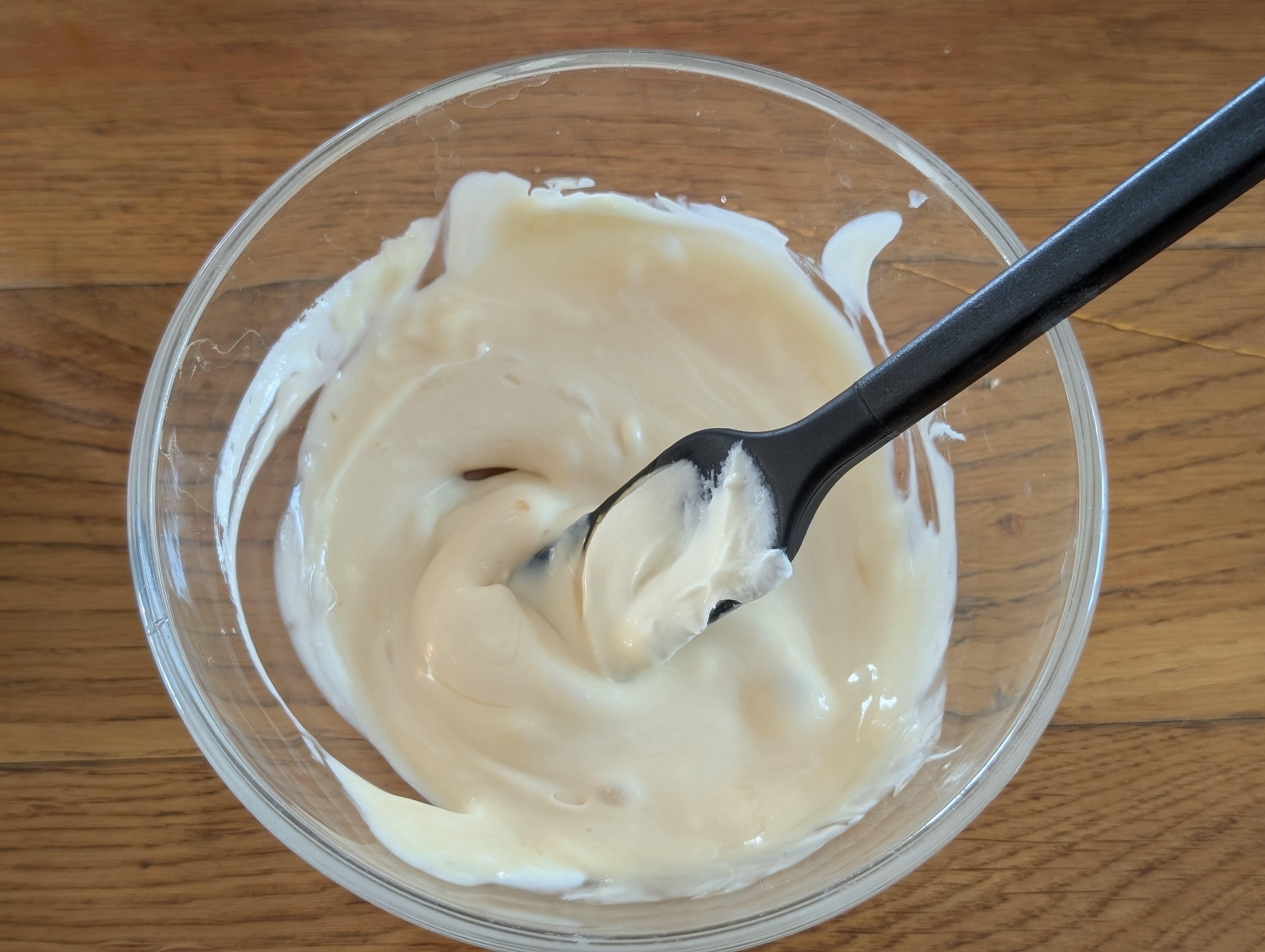2、マスカルポーネとはちみつを混ぜる。