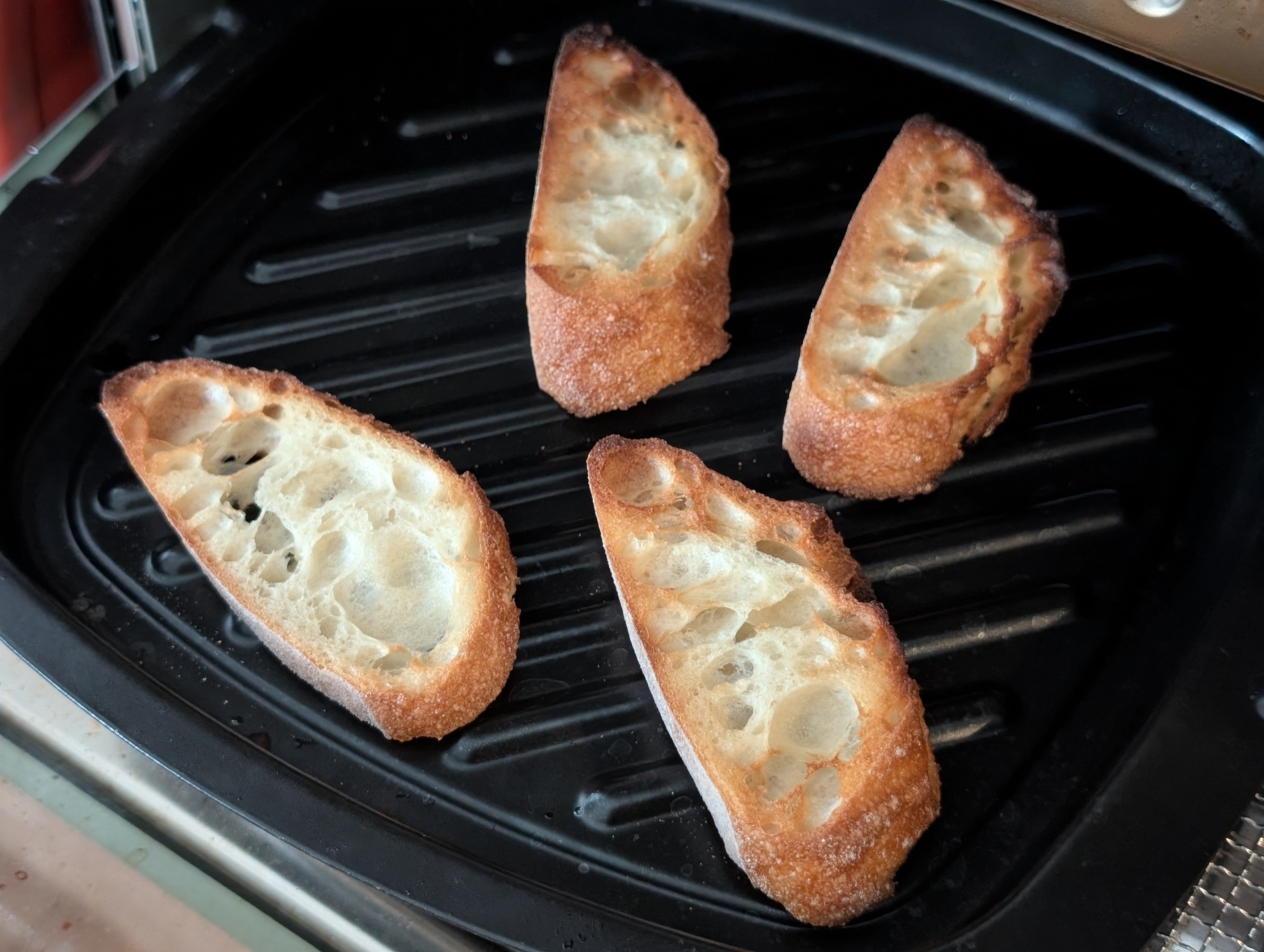 3、バゲットはトースターで軽く焼き色がつくまで焼く。