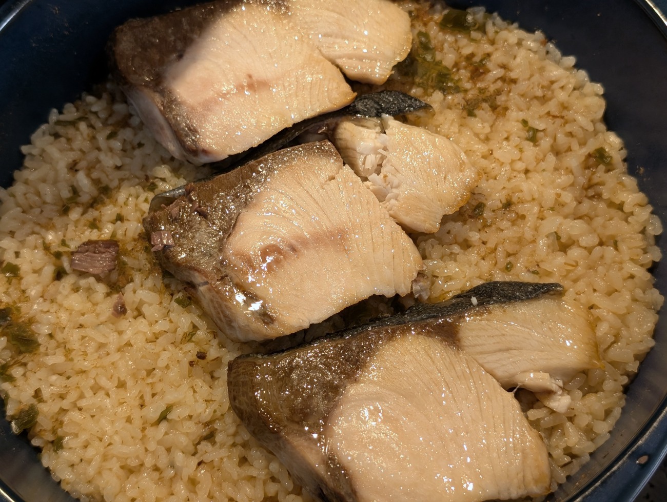 5、3の加熱が終わったら、ぶりをのせ10分蒸らす。