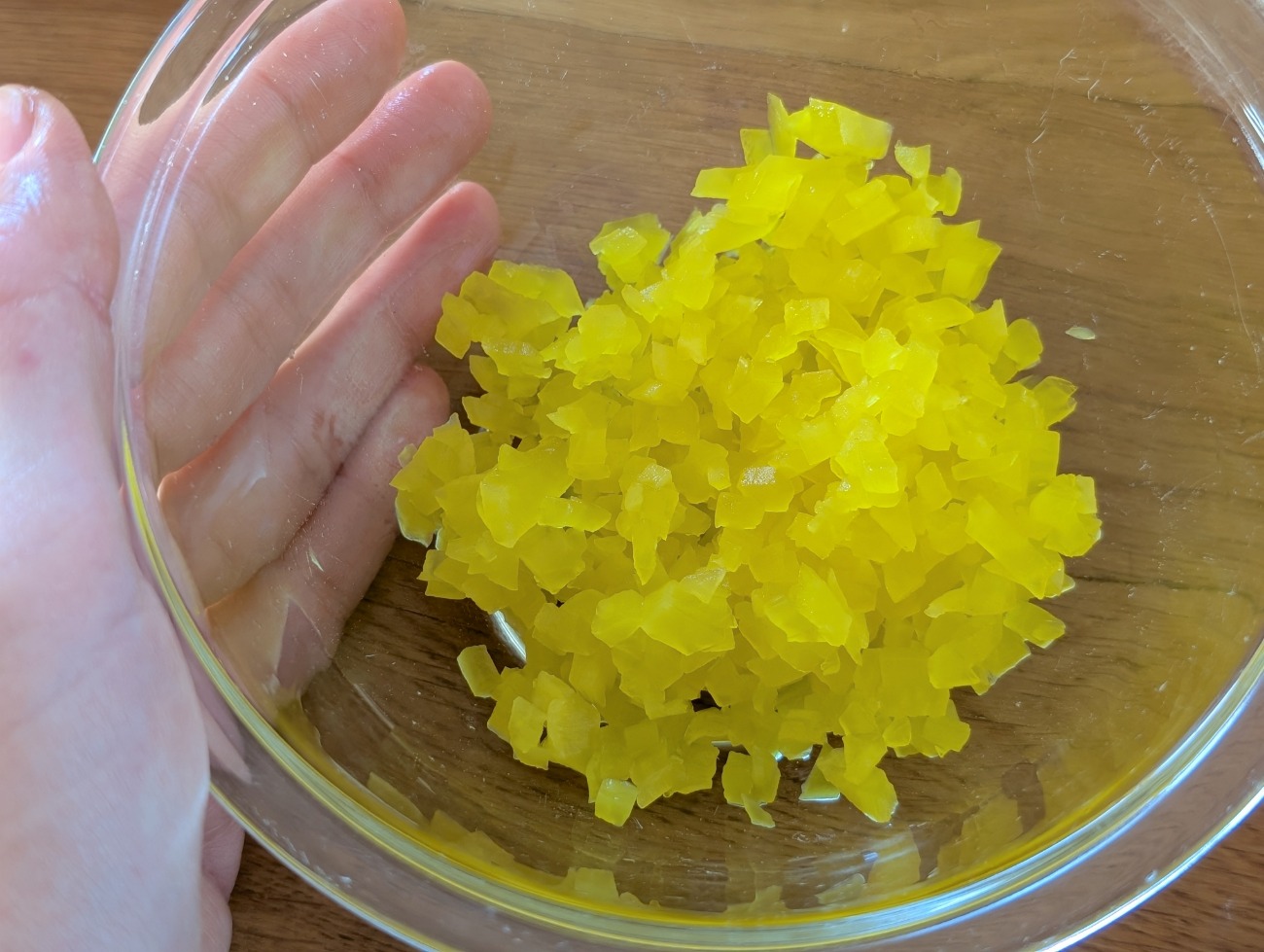 6、たくあんをみじん切り。ゆず皮を千切りにする。