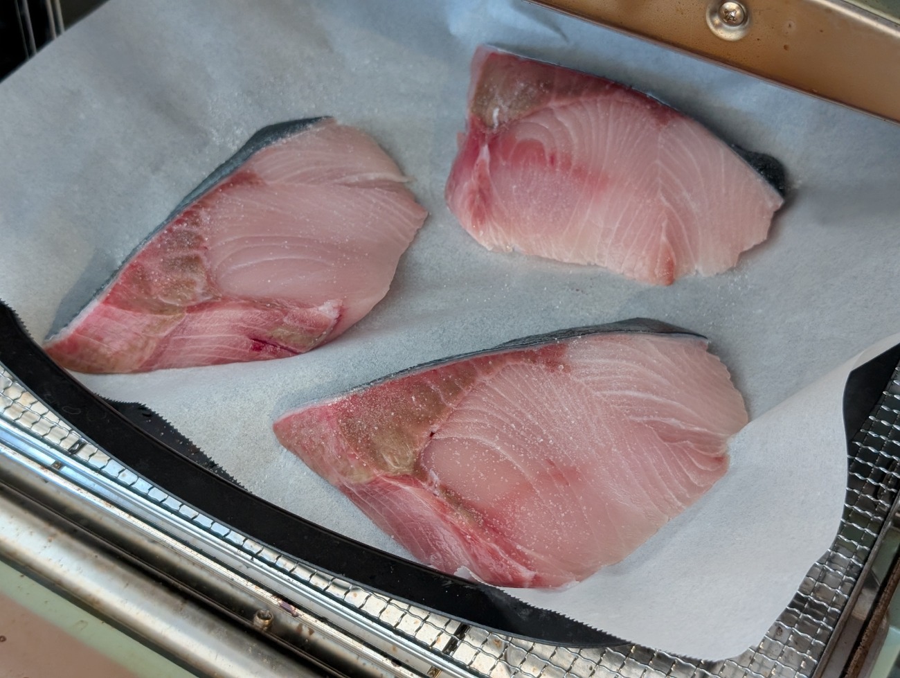 4、ぶりは塩を1切れに対してひとつまみ程度ふり、トースターや魚焼きグリルで焼く。