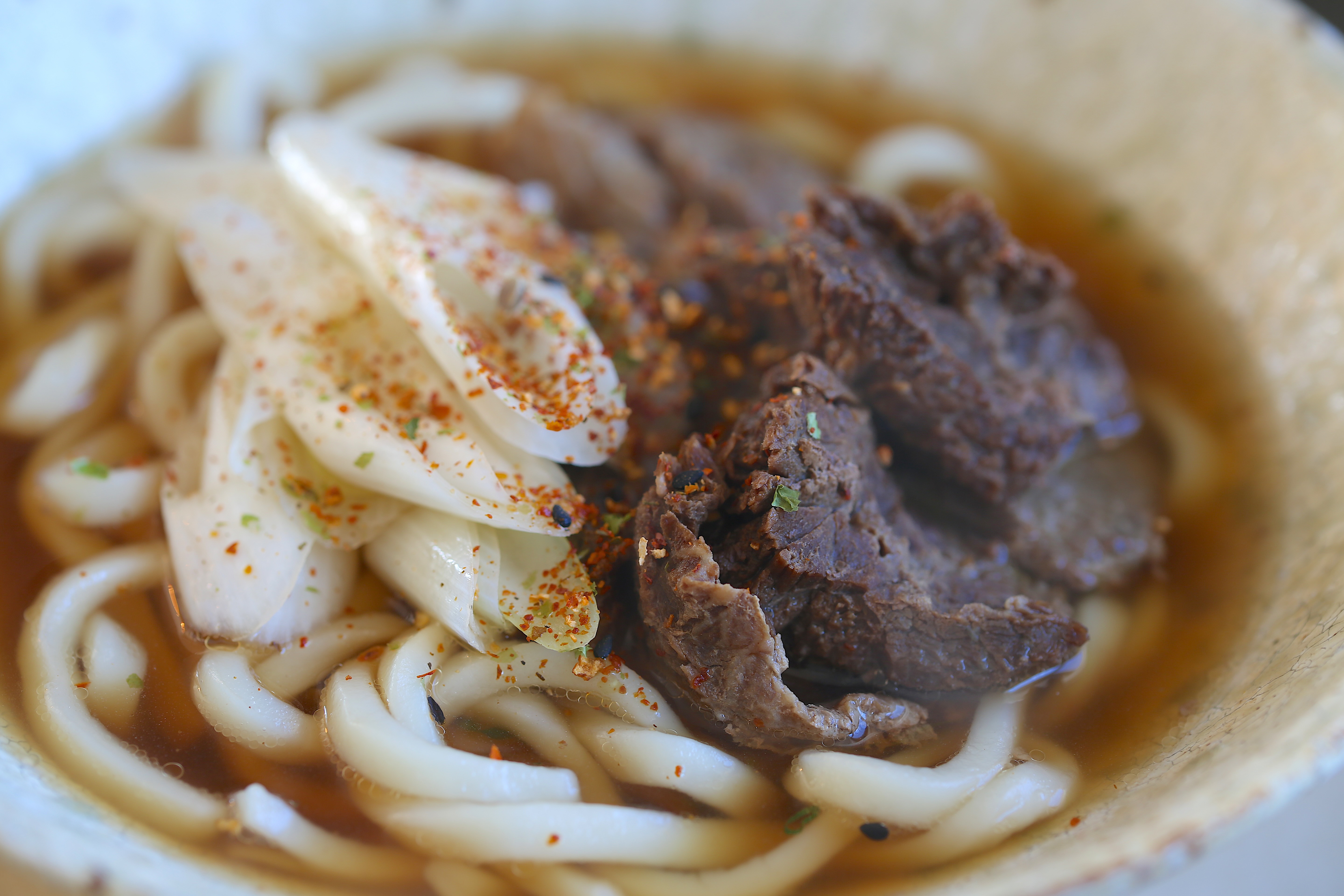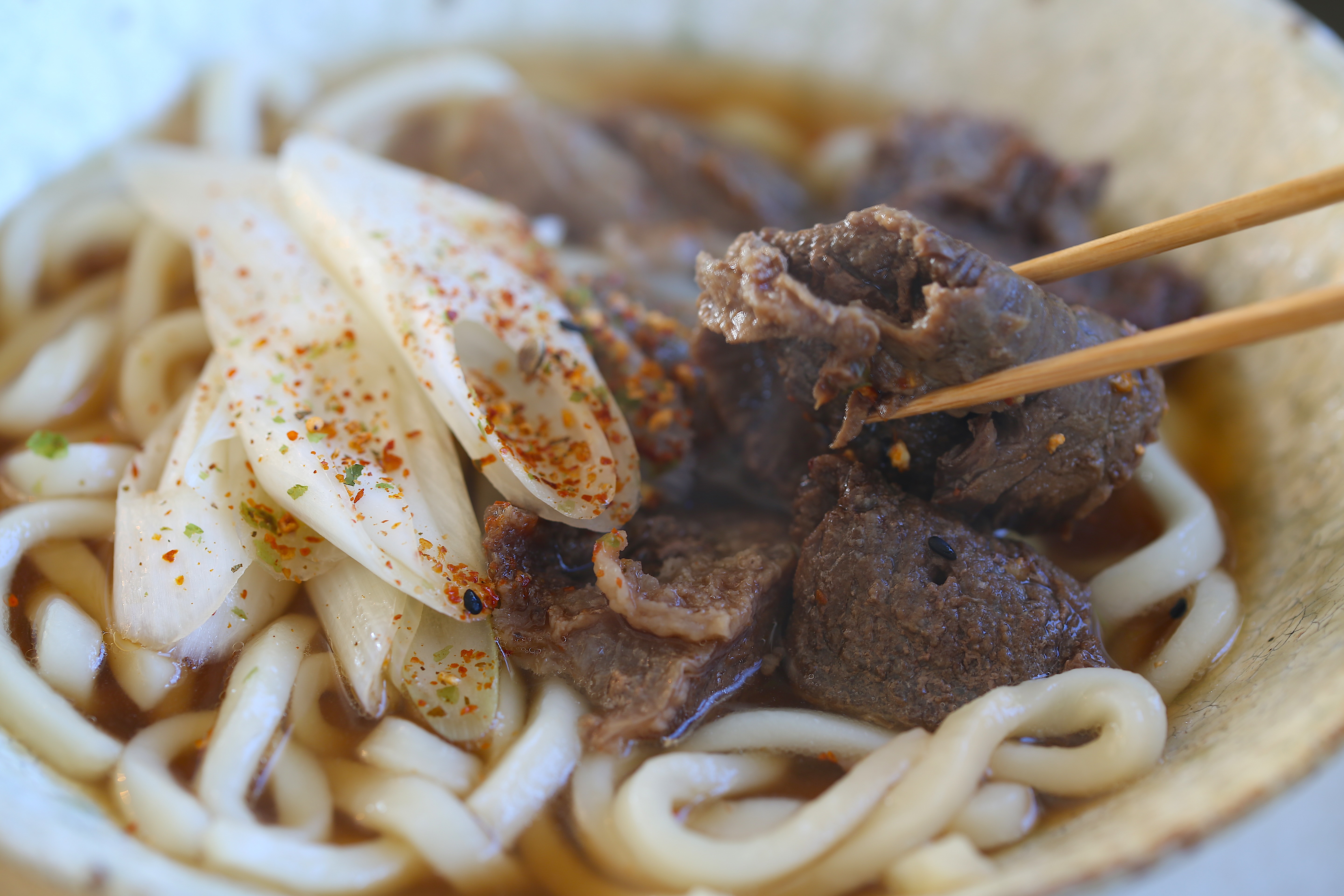 牛しぐれとネギの煮込みうどん