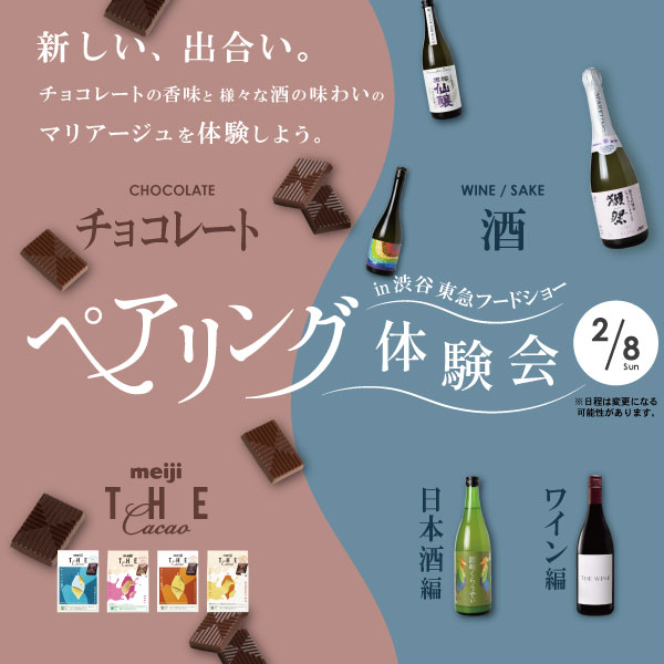 2026年2月8日(日)渋谷 東急フードショー 和洋酒売場にて「meiji THE Cacao」と日本酒・ワインのペアリング体験会を開催!