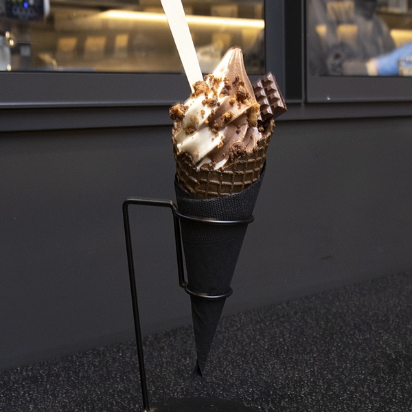 バターの風味たっぷりのビスケット「ピュール・ブール」のソフトクリームとカカオの風味をダイレクトに感じるショコラのソフトリームのミックス