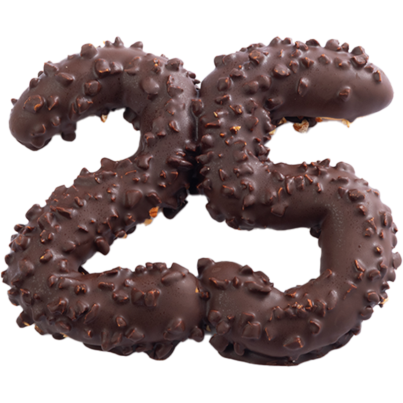 アーモンドをまぶして香ばしく焼き上げ、チョコレートでコーティングしました。