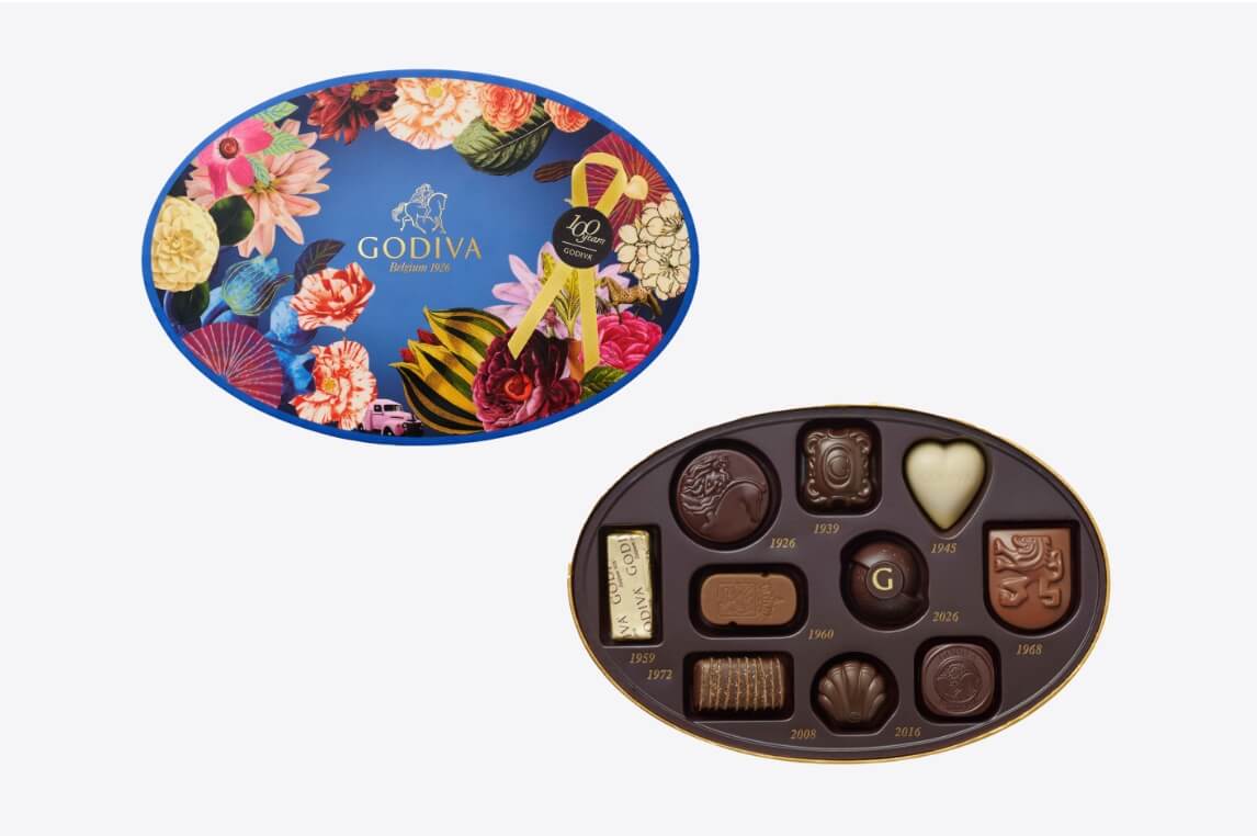 100周年を迎えるゴディバが送り出す、ベルギー王室御用達として伝統の継承と共に革新を重ねてきた100年のアーカイブショコラコレクション。時代を超えて愛され続けるチョコレートから100周年記念粒までを、シックで華麗なパッケージに詰め合わせました。これまでの軌跡と未来に想いを馳せて、驚きと喜びを運ぶ”遊び心”を込めたチョコレートと共に、100年の歴史を巡る旅をお楽しみください。