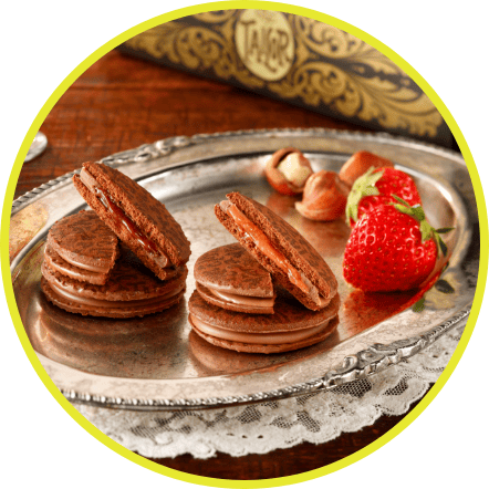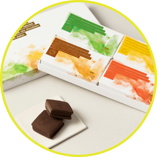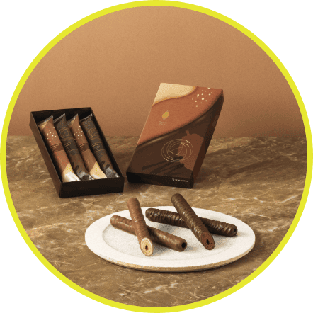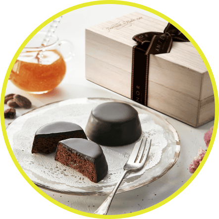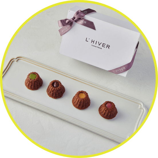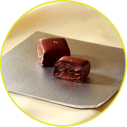 軽やかなチョコレートクリームとキャラメルやコンフィチュールをとじ込めたタルト。サクサクの生地となめらかなフィリングのハーモニーをお楽しみください。